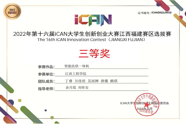 10月23日,第十六屆iCAN大學(xué)生創(chuàng)新創(chuàng)業(yè)大賽江西、福建賽區(qū)選拔賽成功舉辦。江工學(xué)子取得一等獎(jiǎng)1項(xiàng)、二等獎(jiǎng)4項(xiàng)、三等獎(jiǎng)1項(xiàng)的優(yōu)異成績(jī)。