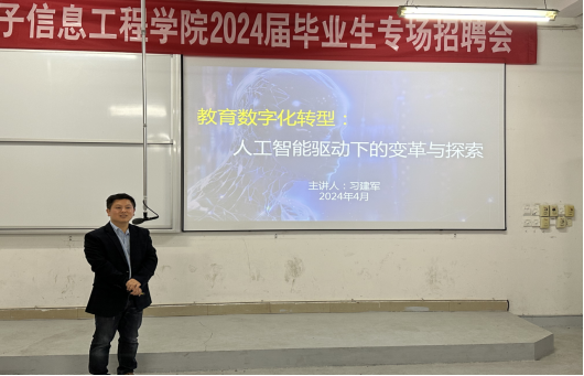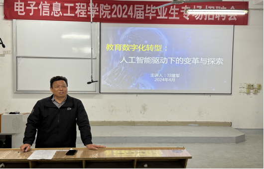 2024年4月11日,學(xué)院邀請(qǐng)習(xí)建軍博士作“教育數(shù)字化轉(zhuǎn)型—人工智能驅(qū)動(dòng)下的變革與探索”專題講座。講座由學(xué)院院長鄒小金主持,學(xué)院物聯(lián)網(wǎng)工程、電子信息工程、機(jī)器人工程專業(yè)學(xué)生參加了講座。