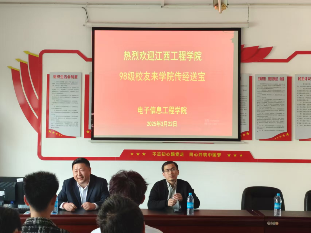 為深度搭建校友與在校學(xué)生的溝通橋梁,精準(zhǔn)助力學(xué)生錨定職業(yè)發(fā)展方向,3月22日下午,電子信息工程學(xué)院D201教室座無(wú)虛席,一場(chǎng)備受期待的“榜樣力量育人講座”在此精彩上演。學(xué)院盛情邀請(qǐng)江西工程學(xué)院98級(jí)杰出校友孫興泉和周禾福一同重返母校,以親身經(jīng)歷為筆,為師生們繪就寶貴經(jīng)驗(yàn)長(zhǎng)卷。