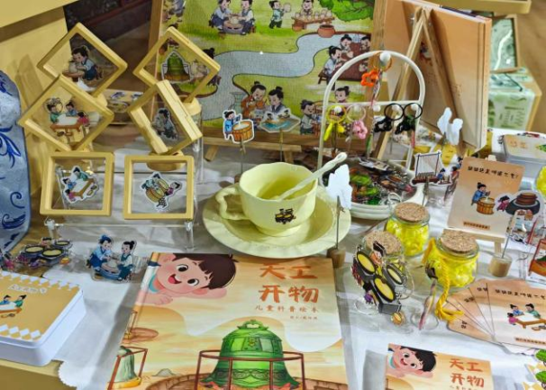 展區(qū)以“傳統(tǒng)文化+現(xiàn)代設(shè)計(jì)”為主線,集中呈現(xiàn)師生團(tuán)隊(duì)歷時(shí)兩年完成的12項(xiàng)產(chǎn)學(xué)研成果。其中“天工開物”系列文創(chuàng)將手工藝文化與現(xiàn)代視覺設(shè)計(jì)結(jié)合,開發(fā)文具、繪本、伴手禮等文創(chuàng)產(chǎn)品;“七夕愛情文化”板塊通過印章互動(dòng)打卡再現(xiàn)“新余仙女”神話傳說,吸引大量觀眾駐足體驗(yàn);“新余美食”專區(qū)采用插畫形式集中展現(xiàn)新余地方特色美食。所有展品均由教師帶領(lǐng)學(xué)生深入仙女湖景區(qū)、分宜縣等地實(shí)地調(diào)研完成,實(shí)現(xiàn)“一作品一文化故事”。