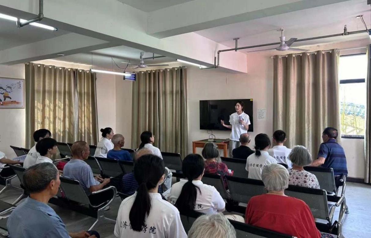 在經濟管理學院黨總支書記張文鳳和經濟管理學院學生黨支部書記胡文秀的帶領下,經濟管理學院“鄉(xiāng)村振興,青年先行”社會實踐隊帶著青年的孝心意識,踏入了頤養(yǎng)之家,開展了一場送關懷活動。在與頤養(yǎng)之家工作人員的親切交流中,實踐隊隊員們仔細詢問著老人們的日常起居、健康狀況以及精神需求。通過這些細致的溝通,實踐隊隊員們不僅精準掌握了老人們的實際情況,為后續(xù)開展貼心的志愿服務等工作提供了極大的便利,更深刻認識到頤養(yǎng)之家作為社會養(yǎng)老重要一環(huán)所發(fā)揮的關鍵作用,它為眾多老人搭建了一個溫暖、安心的晚年生活港灣。