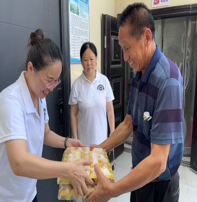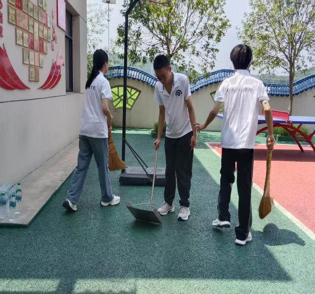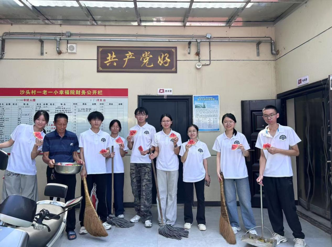 在室外區(qū)域,實踐隊隊員們不懼高溫、干勁十足,隊員們清掃垃圾和樹葉,營造了一個干凈衛(wèi)生的環(huán)境。在清掃過程中,頤養(yǎng)之家負責人特意為實踐隊隊員們送上礦泉水和西瓜,對隊員們的熱心幫助表達衷心的感謝,這份關懷猶如陣陣清涼直達心底,進一步點燃了隊員們的熱情。
