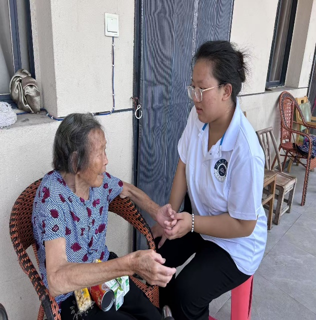 隨后在與老人們的交談中,隊員們以一個傾聽者的身份傾聽老人們講述他們的經歷與故事,同時也為子女難以陪伴在身邊的老人們給予溫暖的話語和鼓勵。與老人們親切地交談,不僅讓隊員們體會到社會的變遷與老人生活的不易,而且讓隊員們更加深刻地認識到青年在緩解社會上代際鴻溝的責任與力量,同時也讓隊員們更加貼近中華傳統(tǒng)美德,讓“老吾老,以及人之老”的中華優(yōu)秀傳統(tǒng)文化厚植于心中,踐行于生活。