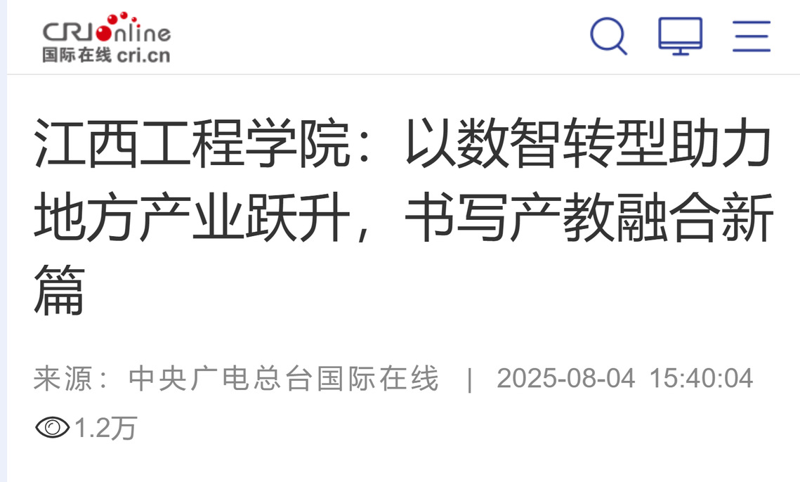 【國際在線】江西工程學院:以數(shù)智轉(zhuǎn)型助力地方產(chǎn)業(yè)躍升,書寫產(chǎn)教融合新篇