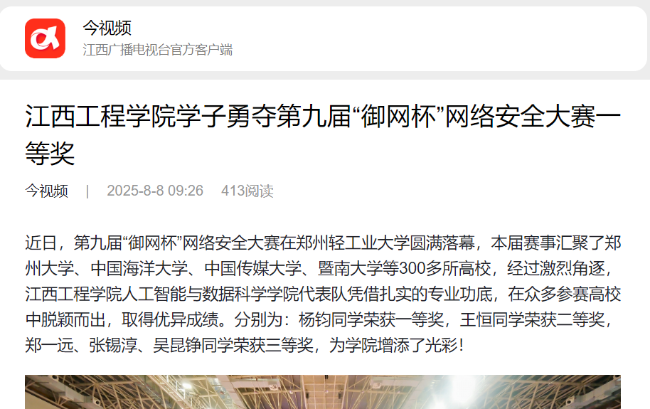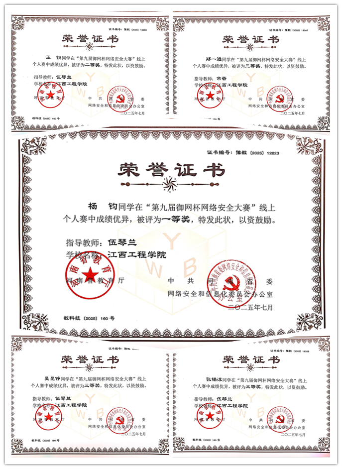 近日,第九屆“御網(wǎng)杯”網(wǎng)絡(luò)安全大賽在鄭州輕工業(yè)大學(xué)圓滿(mǎn)落幕,本屆賽事匯聚了鄭州大學(xué)、中國(guó)海洋大學(xué)、中國(guó)傳媒大學(xué)、暨南大學(xué)等300多所高校,經(jīng)過(guò)激烈角逐,江西工程學(xué)院人工智能與數(shù)據(jù)科學(xué)學(xué)院代表隊(duì)?wèi){借扎實(shí)的專(zhuān)業(yè)功底,在眾多參賽高校中脫穎而出,取得優(yōu)異成績(jī)。分別為:楊鈞同學(xué)榮獲一等獎(jiǎng),王恒同學(xué)榮獲二等獎(jiǎng),鄭一遠(yuǎn)、張錫淳、吳昆錚同學(xué)榮獲三等獎(jiǎng),為學(xué)院增添了光彩!