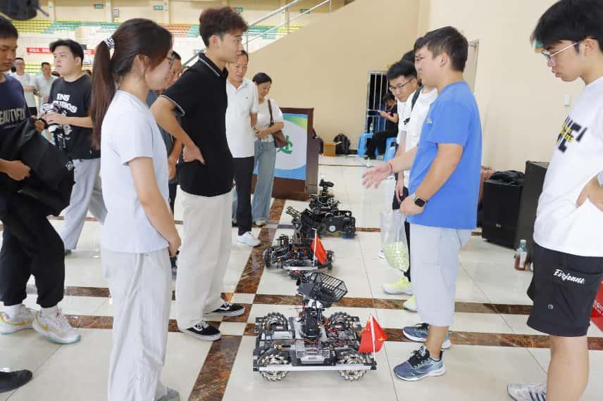 科創(chuàng)展示區(qū)人氣高漲,學(xué)校自主研發(fā)的獲獎(jiǎng)機(jī)器人集中亮相,成為新生了解專業(yè)的“活教材”。英雄機(jī)器人演示42mm大彈丸發(fā)射,強(qiáng)勁火力引驚呼;步兵機(jī)器人開啟“小陀螺模式”,靈活轉(zhuǎn)向射擊展高機(jī)動性;哨兵機(jī)器人自主巡邏、識別目標(biāo),讓新生直觀感受“無人操控”魅力。