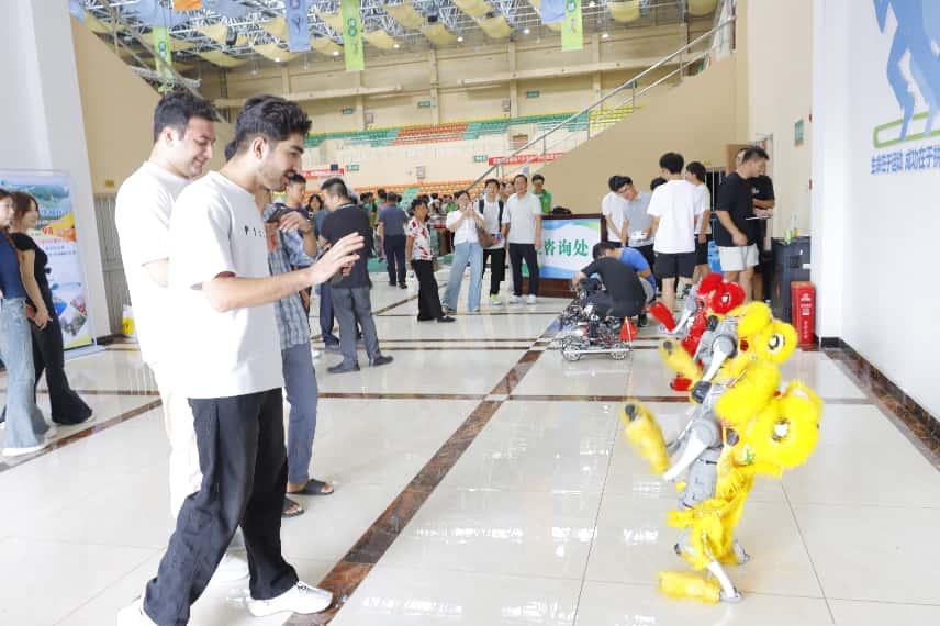 此外,校園門口的四足機(jī)器狗伴隨音樂舞動,憨態(tài)可掬的模樣讓新生紛紛駐足拍照,緩解了初入校園的緊張,真正實(shí)現(xiàn)“人機(jī)互動?燃動青春”。