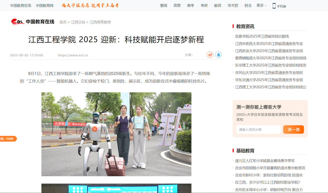 從機(jī)器人“引路”到全方位的入學(xué)保障,江西工程學(xué)院2025年迎新工作以科技為筆,以關(guān)懷為墨,為新生們描繪了一幅充滿希望的大學(xué)畫卷。在這里,新生們不僅開啟了人生的新征程,更在心中種下了科技創(chuàng)新的種子。相信在未來的四年里,他們將在這所充滿科技活力的校園中,不斷探索、成長,書寫屬于自己的精彩篇章。