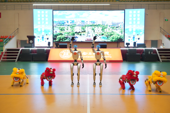 此外,校園門口的四足機器狗伴隨音樂舞動,憨態(tài)可掬的模樣讓新生紛紛駐足拍照,緩解了初入校園的緊張,真正實現(xiàn)“人機互動?燃動青春”。