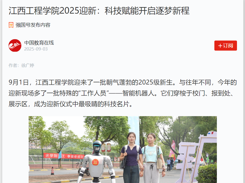 從機器人“引路”到全方位的入學保障,江西工程學院2025年迎新工作以科技為筆,以關懷為墨,為新生們描繪了一幅充滿希望的大學畫卷。在這里,新生們不僅開啟了人生的新征程,更在心中種下了科技創(chuàng)新的種子。相信在未來的四年里,他們將在這所充滿科技活力的校園中,不斷探索、成長,書寫屬于自己的精彩篇章。