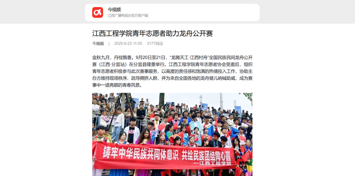 金秋九月,丹桂飄香。9月20日至21日,“龍騰天工·江西村舟”全國民族民間龍舟公開賽(江西·分宜站)在分宜縣隆重舉行。江西工程學(xué)院青年志愿者協(xié)會(huì)受邀后,組織青年志愿者積極參與此次賽事服務(wù),以高度的責(zé)任感和飽滿的熱情投入工作,協(xié)助主辦方維持現(xiàn)場秩序、疏導(dǎo)擁擠人群,并為來自全國各地的龍舟健兒吶喊助威,成為賽事中一道亮眼的青春風(fēng)景。