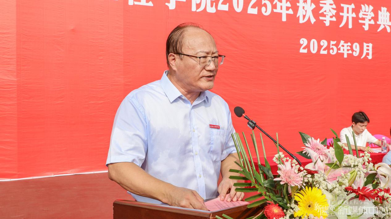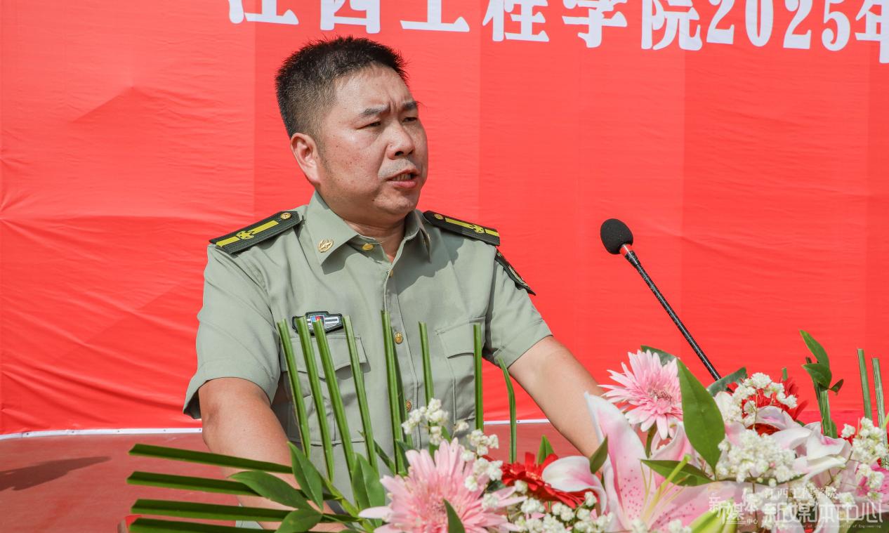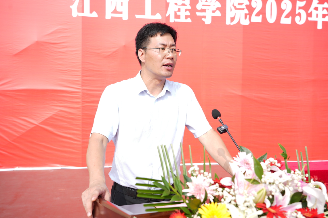 大會上,劉新躍以《逐光江工共赴新程》為題發(fā)表講話。他代表學校向全體2025級新生表示熱烈歡迎,向辛勤培育學生的家長和老師致以崇高敬意和衷心感謝。同時,劉新躍對江西工程學院的校名進行了詳細解讀,并深入闡釋了校名背后所蘊含的時代價值、辦學理念與精神內涵。