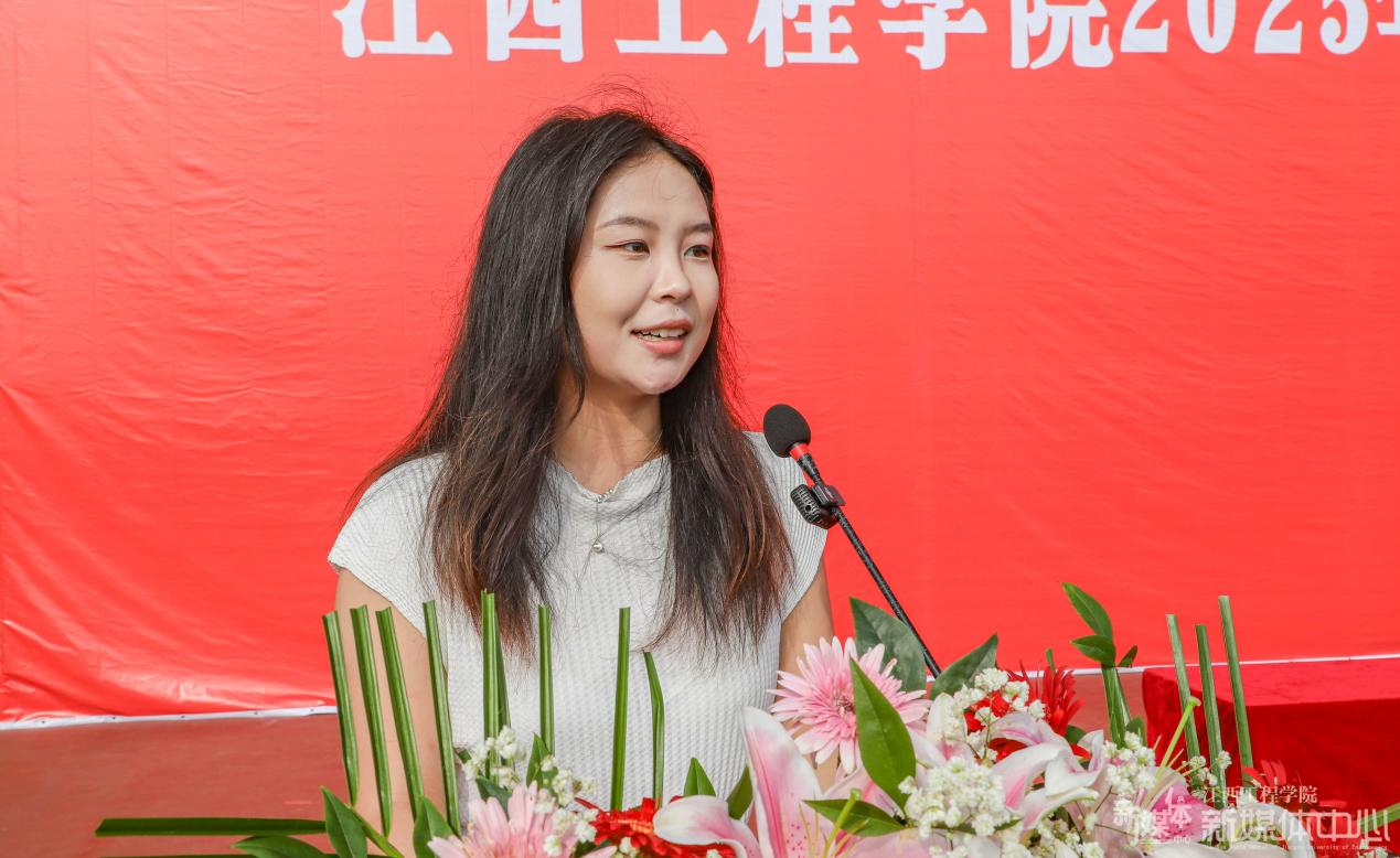 抱石藝術學院水佳楠作為教師代表發(fā)言。她結合自身的經歷,向新生強調“勤樸敏信”的校訓精神傳承,體現(xiàn)在一代代江工人的選擇與堅守之中。她希望新生珍惜在江工的每一天,主動探索、知行合一、創(chuàng)新致用,身心強健,讓青春在為祖國、為人民、為人類的不懈奮斗中綻放絢麗之花。