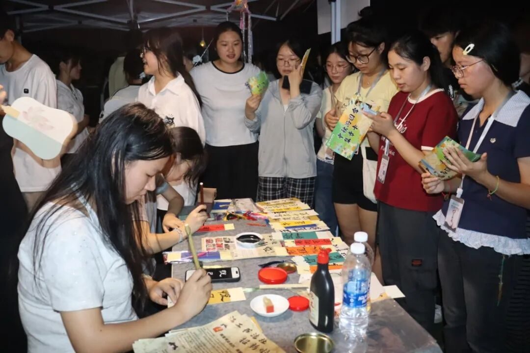 本次活動以 “游園集章” 為核心玩法,同學們入場時領取的集章卡,成了開啟快樂闖關的 “鑰匙”。七大社團精心設計的互動攤位前,處處可見排隊參與的身影,大家?guī)е诖c熱情,在不同游戲中收獲樂趣與印章:有的在詩詞對決中展現(xiàn)文化儲備,用經典詩句傳遞中秋意蘊;有的在反應力挑戰(zhàn)中歡笑不斷,用敏捷動作贏取通關認可;有的在傳統(tǒng)游戲中體驗古人雅趣,在投擲與套圈間感受競技快樂;還有的拿起筆墨書寫祝福,在燈謎解謎中探索巧思,在月餅盲品中喚醒味蕾記憶。每成功通關一個項目,集章卡上便多一枚專屬印章,積累到一定數(shù)量后,還能到總服務臺兌換紙巾、盲盒、零食、洗衣液、定制文創(chuàng)等精美禮品,讓參與感與獲得感雙雙拉滿。