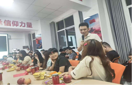 隨著互動游戲環(huán)節(jié)的開啟,茶話會的氣氛被推向第一個高潮。“我家鄉(xiāng)的中秋要吃‘糖塔’,還要猜燈謎、放天燈,特別熱鬧!”來自福建的同學(xué)帶著滿滿的自豪感,向大家介紹家鄉(xiāng)的中秋習(xí)俗,生動的描述讓在場學(xué)子仿佛“云游”了一番;隨后,幾位同學(xué)主動上臺獻(xiàn)唱,《水調(diào)歌頭》的婉轉(zhuǎn)、《成都》的溫柔、《光輝歲月》的青春,一首首歌曲贏得陣陣掌聲,歌聲里滿是節(jié)日的喜悅與青春的朝氣。現(xiàn)場還設(shè)置了“中秋知識小問答”“默契大考驗(yàn)”等互動游戲,同學(xué)們積極參與、默契配合,答錯時的歡聲笑語、答對時的歡呼喝彩,讓整個會場充滿了青春活力。
