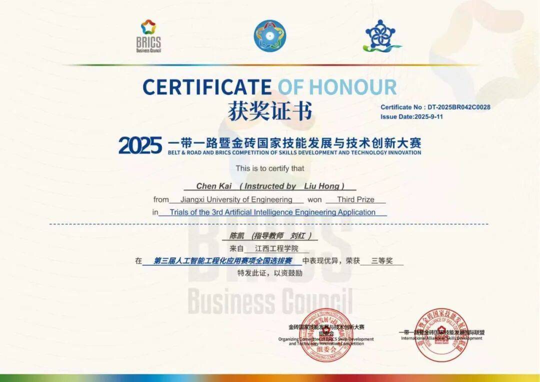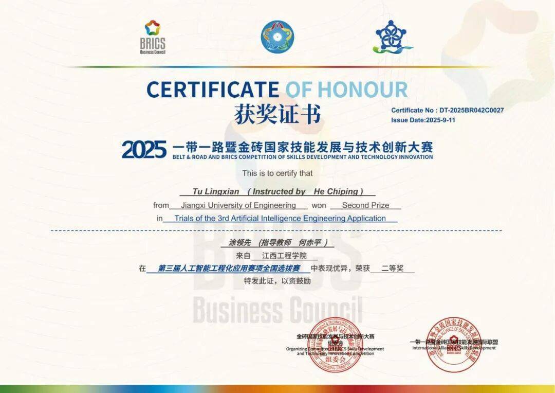 近日,2025“一帶一路”暨金磚國家技能發(fā)展與技術(shù)創(chuàng)新大賽——第三屆人工智能工程化應(yīng)用賽項(工程實踐)全國選拔賽中,我校人工智能與數(shù)據(jù)科學(xué)學(xué)院派出的兩支隊伍全員獲獎,分別榮獲二等獎和三等獎,充分展現(xiàn)了學(xué)校在AI工程化人才方面的培養(yǎng)成效。