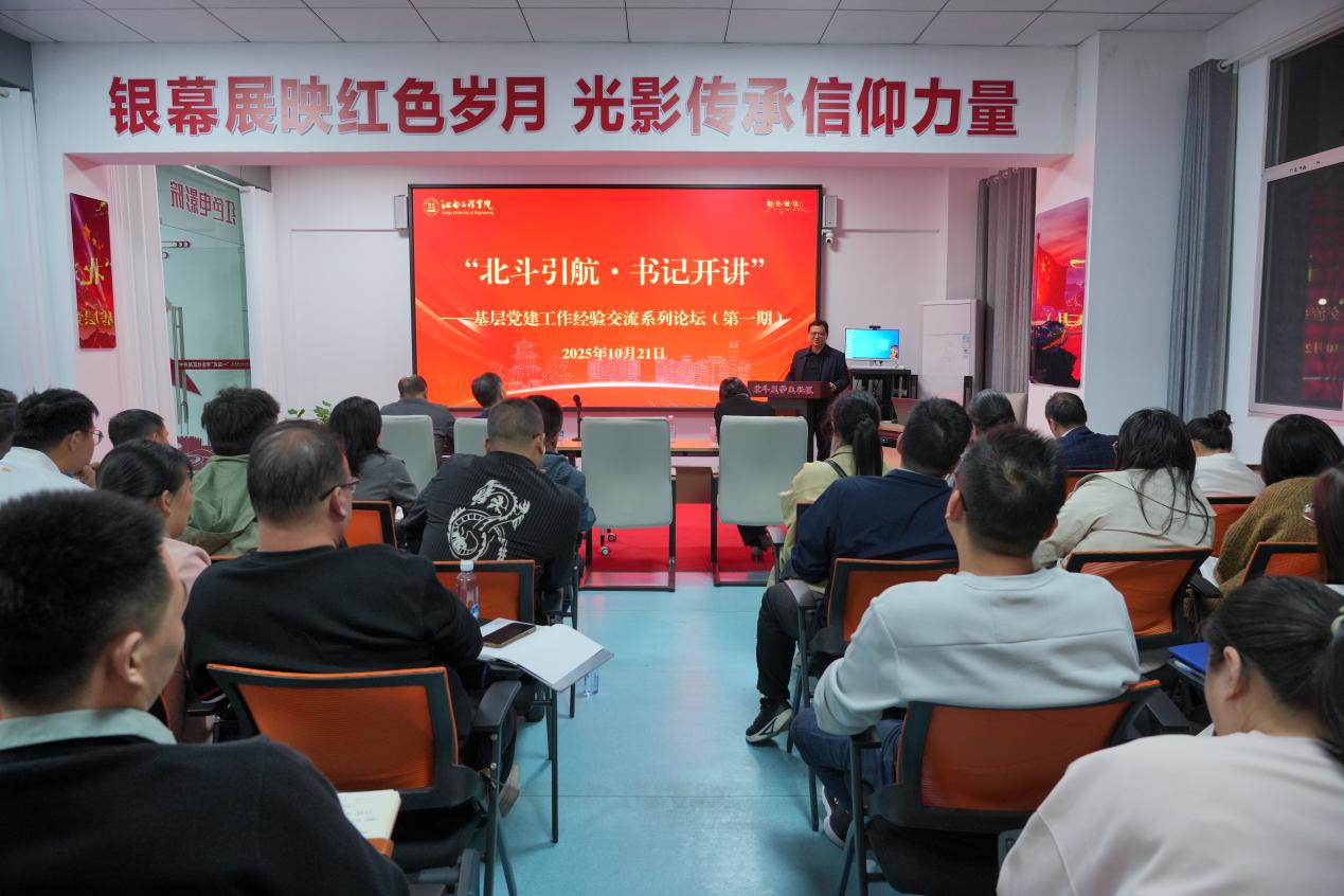 10月21日晚,以“書記講給書記聽”為主題的“北斗引航·書記開講”基層黨建工作交流系列論壇(第一期)在天工校區(qū)“一站式”學(xué)生社區(qū)紅色影院成功舉辦。校黨委書記、督導(dǎo)專員魏建克,黨委委員、副校長(zhǎng)沈良出席會(huì)議并講話。馬克思主義學(xué)院直屬黨支部書記于永清作首期分享,各黨總支(直屬黨支部)書記、副書記、各支部書記、專職組織員共50余人參加論壇。論壇由黨委委員、黨委組織部部長(zhǎng)熊文珍主持。