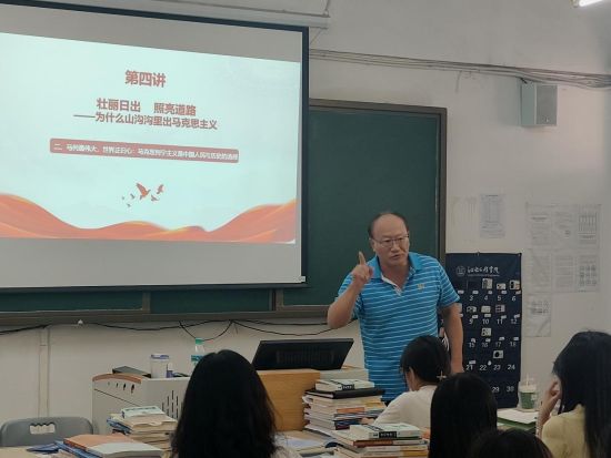 課堂上,肖鵬老師以“馬克思列寧主義是人民與歷史的選擇”為核心主題,搭建起“史料+案例+思考”的教學(xué)框架。他通過梳理近代中國思想演進(jìn)史料、剖析經(jīng)典歷史案例,既系統(tǒng)闡釋紅色文化的核心內(nèi)涵,又結(jié)合當(dāng)下時(shí)代發(fā)展解讀其現(xiàn)實(shí)意義。整堂課教學(xué)思路清晰連貫,語言生動(dòng)且富有感染力,既有理論深度的“厚度”,又有聯(lián)系實(shí)際的“溫度”,在引導(dǎo)學(xué)生從紅色文化中汲取精神養(yǎng)分的同時(shí),更帶動(dòng)起活躍的課堂氛圍,師生互動(dòng)頻繁、思維碰撞熱烈。