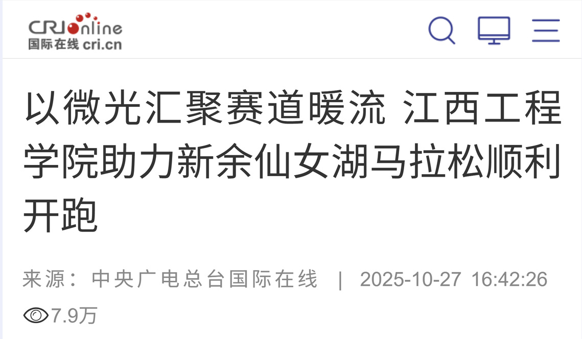 此次志愿服務(wù),不僅保障了仙女湖馬拉松半馬終點(diǎn)環(huán)節(jié)的高效順暢,更將江西工程學(xué)院人工智能與數(shù)據(jù)科學(xué)學(xué)院學(xué)子的良好風(fēng)貌與青春擔(dān)當(dāng),深深烙印在每一位選手和工作人員心中。