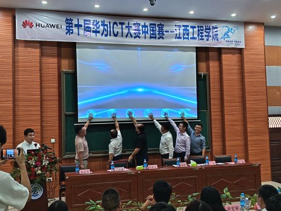 隨后,到場領(lǐng)導(dǎo)與嘉賓共同上臺,啟動第十屆華為ICT大賽中國賽路演江西工程學(xué)院站活動,正式拉開新余地區(qū)賽事參與的序幕。