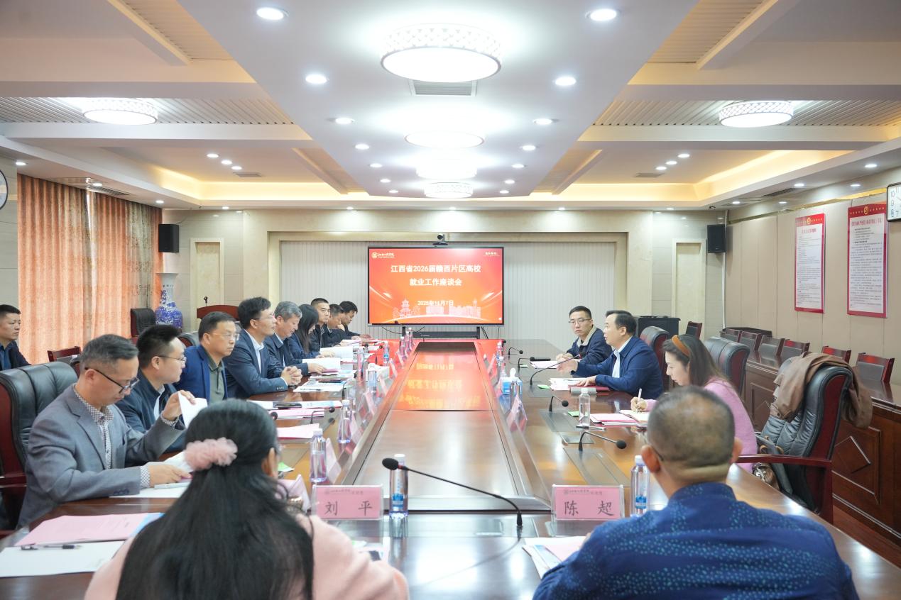 招聘會結(jié)束后,2026屆贛西片區(qū)高校就業(yè)工作座談會在江西工程學(xué)院天工校區(qū)行政樓七樓會議室召開。片區(qū)內(nèi)12所高校的就業(yè)工作負(fù)責(zé)人,詳細(xì)介紹了本校2026屆畢業(yè)生規(guī)模、專業(yè)結(jié)構(gòu)、就業(yè)意向等情況,客觀分析了當(dāng)前高校就業(yè)工作面臨的困難與問題,并就省教育廳推進(jìn)高校畢業(yè)生就業(yè)工作,提出了諸多具有可操作性的寶貴建議。鄢彬華就扎實(shí)有力推進(jìn)大學(xué)生就業(yè)創(chuàng)業(yè)工作提出四點(diǎn)意見:一要共享片區(qū)優(yōu)秀就業(yè)崗位資源,多舉辦小而精、專而優(yōu)的專場招聘會;二要共推片區(qū)產(chǎn)教融合協(xié)同育人,著力拓寬畢業(yè)生就業(yè)渠道;三要共建就業(yè)聯(lián)動機(jī)制,構(gòu)建需求與培養(yǎng)對接的數(shù)據(jù)共享通道;四要持續(xù)優(yōu)化就業(yè)服務(wù),不斷提升就業(yè)指導(dǎo)的精準(zhǔn)度和實(shí)效性。