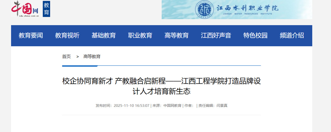 作為江西省首批轉(zhuǎn)型發(fā)展試點高校、教育部產(chǎn)教融合創(chuàng)新基地首批高校,江西工程學(xué)院正以“產(chǎn)業(yè)學(xué)院引領(lǐng)、項目貫穿教學(xué)、雙導(dǎo)師護航”的育人生態(tài),持續(xù)深化產(chǎn)教融合,讓設(shè)計教育更貼近實戰(zhàn)需求,全面提升學(xué)生創(chuàng)新能力與社會適應(yīng)能力,為行業(yè)發(fā)展輸送更多優(yōu)秀應(yīng)用型人才,為地方產(chǎn)業(yè)升級與中國品牌國際化貢獻江工智慧和力量。