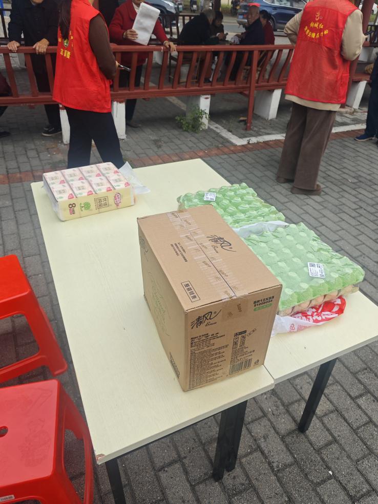 游戲結(jié)束后,志愿者們?yōu)閰⑴c活動的老人送上了雞蛋、抽紙等實用禮品,并組織集體合影,記錄下一張張溫暖的笑臉?;顒幼詈?,志愿者們認真整理場地、清理垃圾,展現(xiàn)了良好的精神風貌與責任意識。