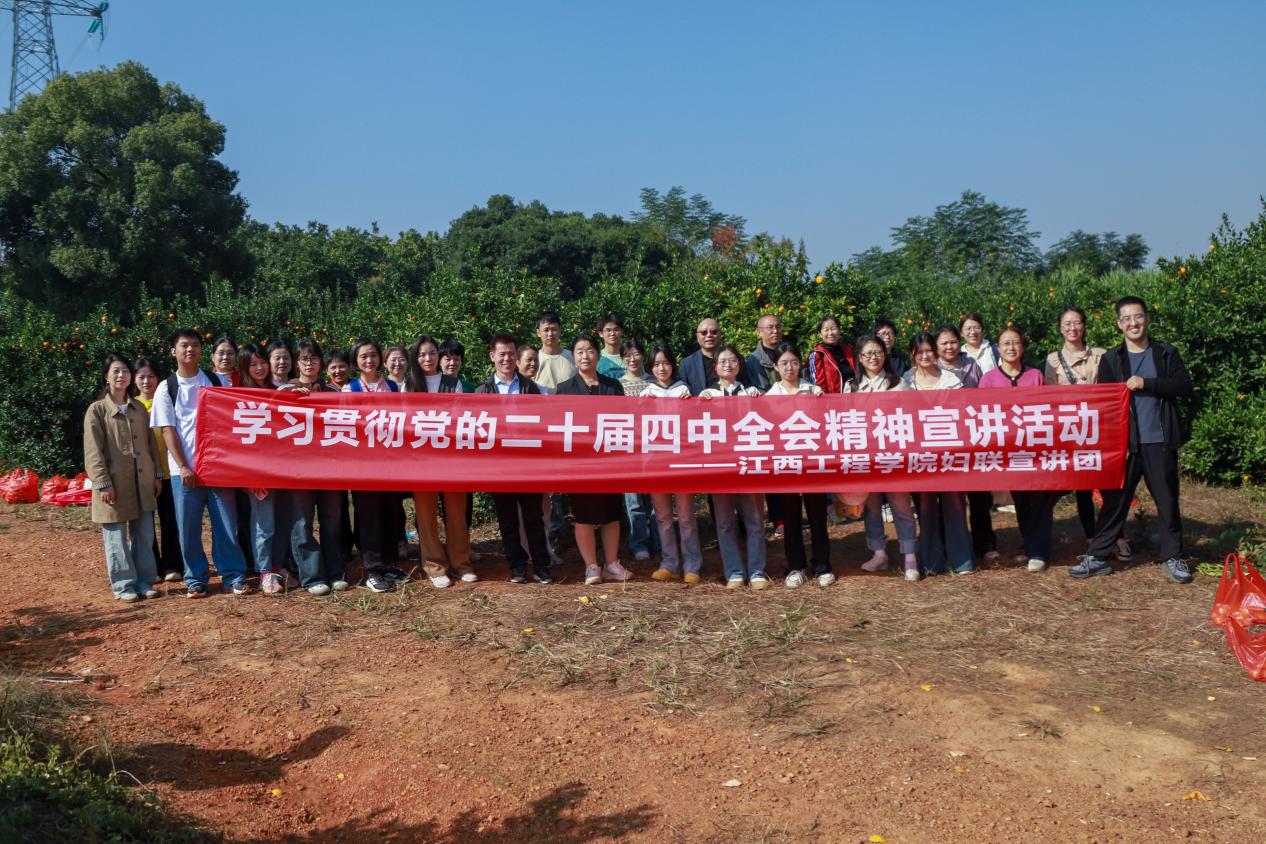 為認(rèn)真學(xué)習(xí)貫徹黨的二十屆四中全會(huì)精神,引導(dǎo)新農(nóng)人堅(jiān)定發(fā)展信心、凝聚奮進(jìn)力量,2025年11月15日,江西工程學(xué)院校工會(huì)、校婦聯(lián)、校關(guān)工委聯(lián)合馬克思主義學(xué)院,組建宣講團(tuán)與助農(nóng)實(shí)踐隊(duì),組織50余名師生赴新余市高新區(qū)水西鎮(zhèn)施家村,開展“學(xué)全會(huì)精神、采田間橘香、助鄉(xiāng)村振興”主題實(shí)踐活動(dòng)。