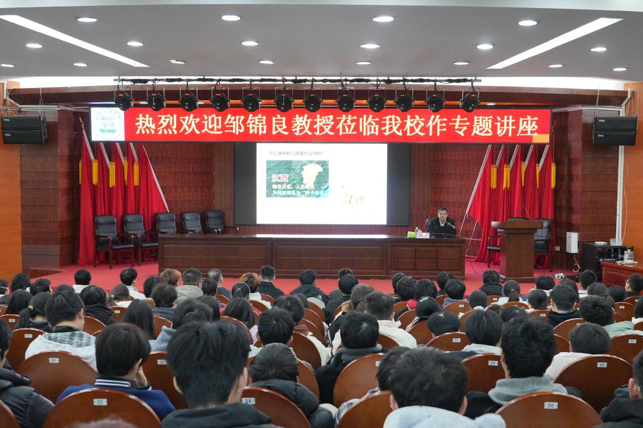 樂俊杰在總結(jié)講話中指出,鄒錦良教授以深厚的學(xué)養(yǎng)、廣闊的視野和飽滿的熱情,為師生們立體勾勒出江西的歷史脈絡(luò)、文化精髓與時(shí)代風(fēng)貌,讓大家對(duì)這片紅土地有了更深刻的理解和更深厚的熱愛。他向全體學(xué)子提出三點(diǎn)期望:一是做“行走的文化探尋者”,主動(dòng)走出課堂,在贛鄱大地上探尋文化印記;二是做“深耕的文化研究者”,充分利用校圖書館資源,深挖江西文化細(xì)節(jié),從先賢智慧中汲取成長(zhǎng)養(yǎng)分,筑牢文化自信根基;三是做“熱情的文化傳播者”,積極分享贛鄱文化之美,讓本土文化在新時(shí)代煥發(fā)生機(jī)。