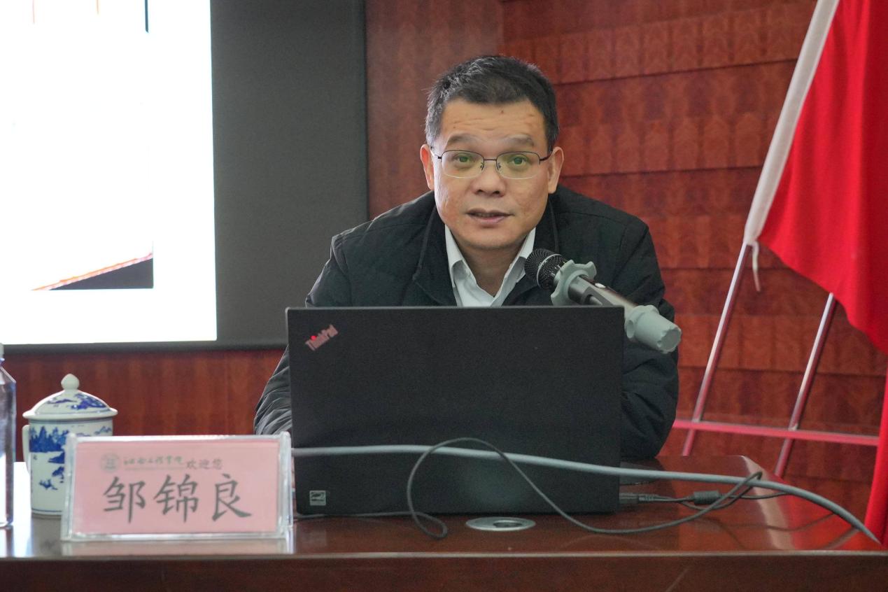 講座中,鄒錦良重點(diǎn)聚焦“顏色里的江西”,以“紅(革命圣地)、綠(生態(tài)家園)、白(陶瓷瑰寶)、金(豐收田野)”四大色系,精準(zhǔn)詮釋江西的多元特質(zhì)。他結(jié)合景德鎮(zhèn)陶瓷燒制技藝、贛南采茶戲等非物質(zhì)文化遺產(chǎn),以及江鈴汽車、廬山云霧茶等現(xiàn)代知名品牌,生動(dòng)展現(xiàn)了江西從歷史深處穩(wěn)步邁向新時(shí)代的蓬勃生機(jī)與強(qiáng)勁活力。鄒教授憑借深厚的學(xué)術(shù)積淀、鮮活的案例講解與飽滿的情感表達(dá),帶領(lǐng)在場(chǎng)師生穿越時(shí)空,沉浸式感受贛鄱大地的文化基因與時(shí)代脈搏。
