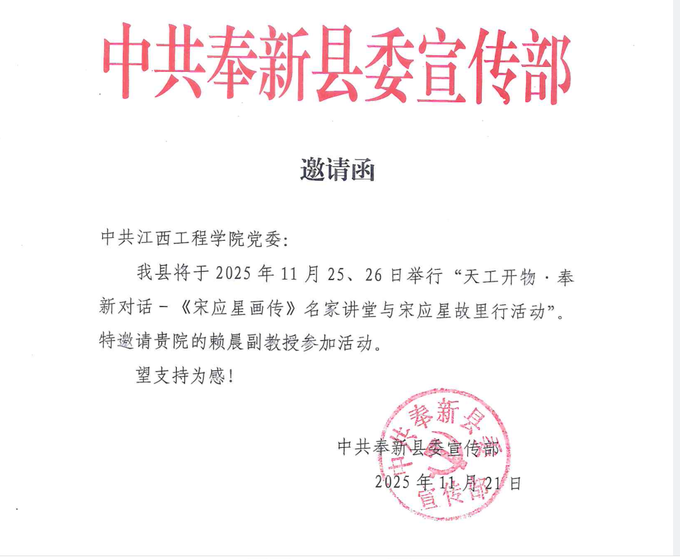 2025年11月28日,新余市社會科學(xué)界聯(lián)合會、江西省天工開物文化研究會聯(lián)合公示2025年度新余市天工開物文化專項課題中標(biāo)結(jié)果,學(xué)校賴晨副教授主持的《新余是<天工開物>成書地研究》成功入選。此次學(xué)校與江西師范大學(xué)等省內(nèi)高校同臺躋身4個中標(biāo)課題組之列,不僅印證了學(xué)校在天工文化研究領(lǐng)域的深厚積淀,更彰顯了應(yīng)用型高校在特色學(xué)術(shù)研究中的強勁實力。