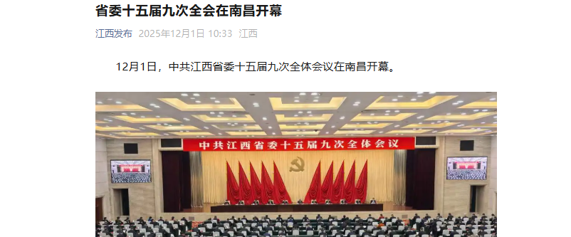12月1日,中共江西省委十五屆九次全體會議在南昌開幕。