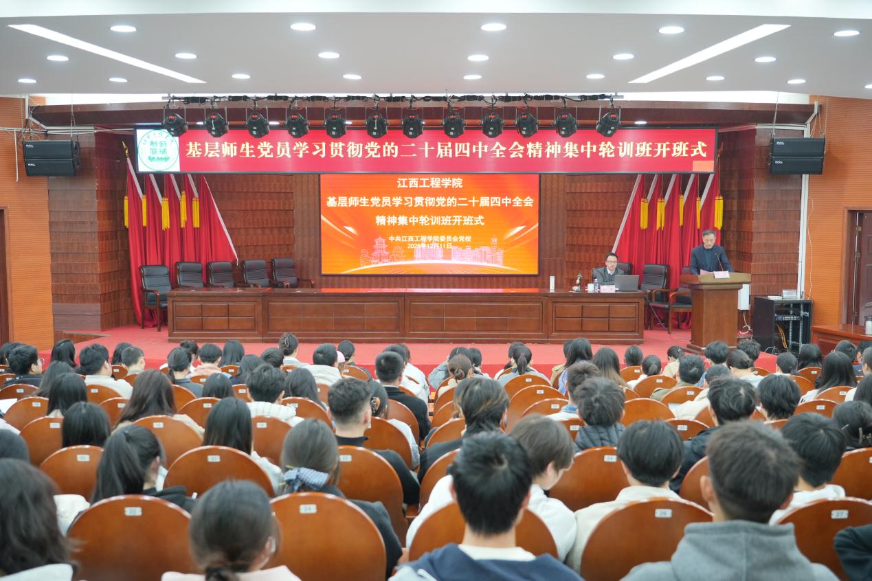 為深入學(xué)習(xí)貫徹黨的二十屆四中全會精神,引導(dǎo)全?;鶎訋熒h員切實把思想和行動統(tǒng)一到黨中央決策部署上來,2025年12月11日至12日,我校舉辦了基層師生黨員學(xué)習(xí)貫徹黨的二十屆四中全會精神集中輪訓(xùn)班。中共江西省委黨校(江西行政學(xué)院)研究生導(dǎo)師,程濤博士,新余市社科聯(lián)黨組書記、主席,市委宣講團(tuán)成員尹曉林應(yīng)邀作輔導(dǎo)報告,校黨委委員、副校長沈良出席開班式并講話。各基層黨組織教師黨員代表、2025年新發(fā)展黨員及優(yōu)秀教師、學(xué)生入黨積極分子代表參加培訓(xùn)。