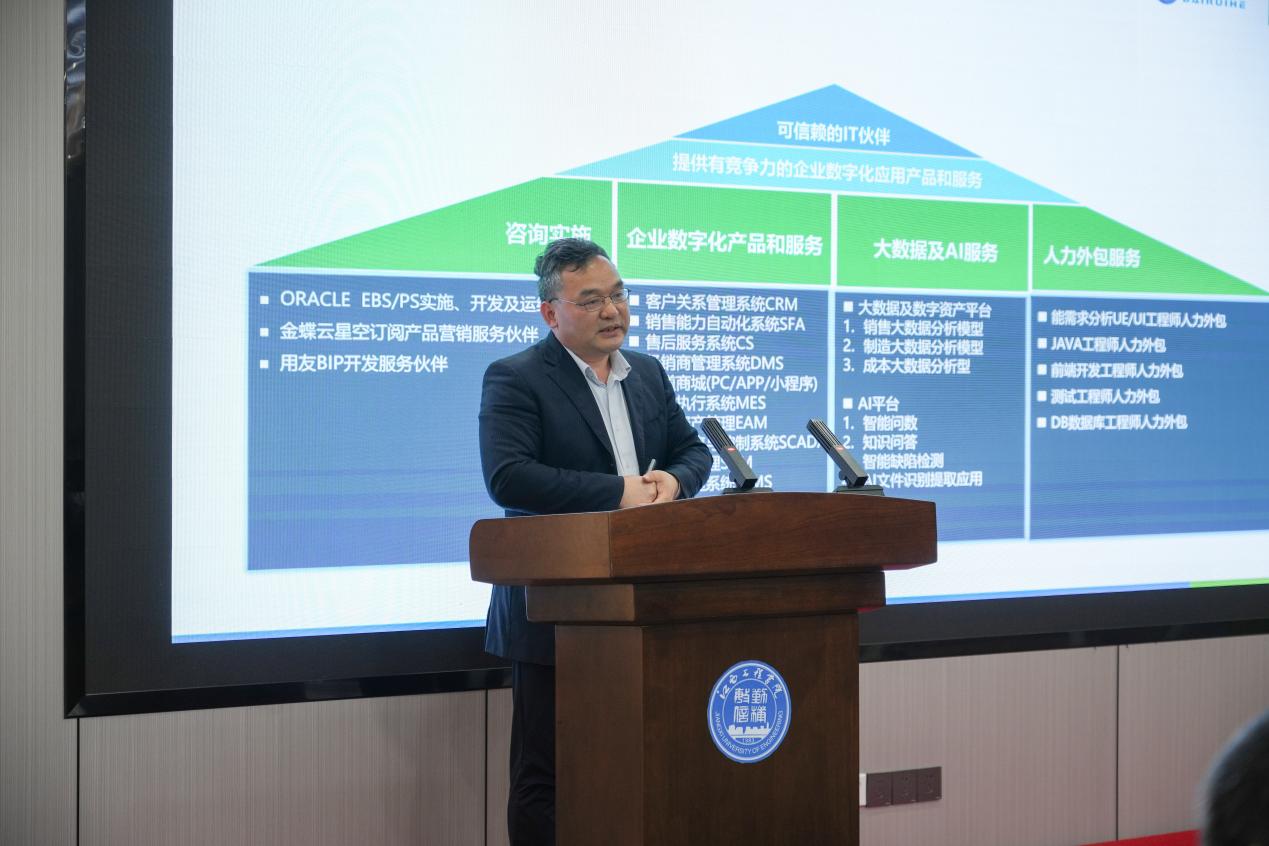 在企業(yè)代表發(fā)言環(huán)節(jié),六位來自不同行業(yè)的企業(yè)負(fù)責(zé)人結(jié)合自身發(fā)展實際,分享合作經(jīng)驗、表達(dá)合作期待。中國移動通信集團(tuán)江西有限公司新余分公司總經(jīng)理黃瑋表示,公司正深入推進(jìn)數(shù)字化轉(zhuǎn)型,急需復(fù)合型信息人才,期待與學(xué)校在5G+、物聯(lián)網(wǎng)、大數(shù)據(jù)等領(lǐng)域開展定向培養(yǎng)與項目研發(fā);新余市數(shù)字產(chǎn)業(yè)投資發(fā)展有限公司黨委委員、副總經(jīng)理張小紅介紹了公司在智慧城市、數(shù)字政務(wù)領(lǐng)域的布局,希望與學(xué)校共建實訓(xùn)基地,深化數(shù)據(jù)治理與人工智能應(yīng)用合作;華為技術(shù)有限公司江西政企服務(wù)部部長徐洪國強調(diào)了生態(tài)合作的重要性,提出將在師資培訓(xùn)、認(rèn)證體系、競賽支持等方面給予學(xué)校資源傾斜。