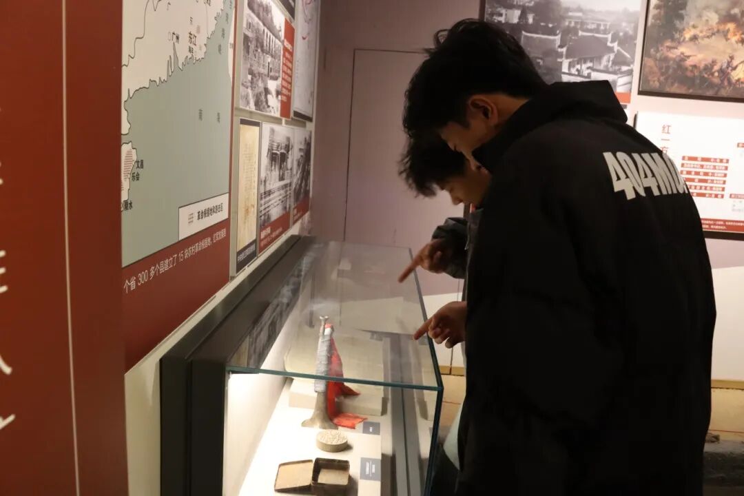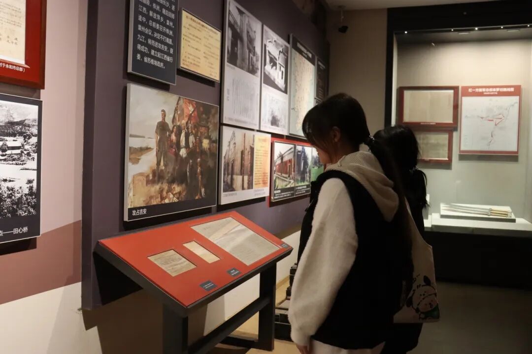 在羅坊會議歷史陳列區(qū),學(xué)生們通過會議復(fù)原場景和珍貴文獻資料,深入了解這一會議的重大歷史意義。展柜中紅軍使用過的武器裝備、會議決議文件等珍貴文物,生動再現(xiàn)了革命先輩在關(guān)鍵時刻的英明決策。在“興國調(diào)查”專題展區(qū),毛澤東同志深入基層調(diào)查研究的事跡讓學(xué)生們深刻體會到中國共產(chǎn)黨人求真務(wù)實、密切聯(lián)系群眾的優(yōu)良作風(fēng)。![]()