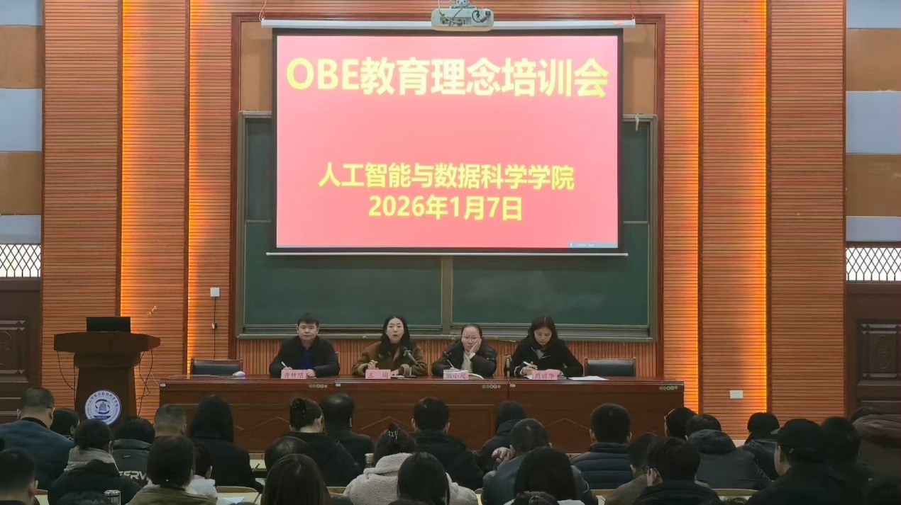 為深入貫徹應(yīng)用型人才培養(yǎng)要求,推動教育教學(xué)改革走深走實(shí),2026年1月7日,人工智能與數(shù)據(jù)科學(xué)學(xué)院于二樓學(xué)術(shù)報告廳舉行OBE教育理念專題培訓(xùn)會。此次培訓(xùn)會有學(xué)院黨總支書記王娟等學(xué)院領(lǐng)導(dǎo)出席,學(xué)院全體教師參與。