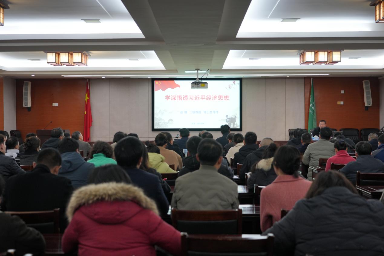 會(huì)議邀請了國家經(jīng)濟(jì)學(xué)二級(jí)教授、博士、博士生導(dǎo)師,江蘇科技大學(xué)原副校長、中共江蘇省委黨校原副校長談鎮(zhèn)作專題輔導(dǎo)報(bào)告。談鎮(zhèn)教授以《學(xué)深悟透習(xí)近平經(jīng)濟(jì)思想》為主題,從“新時(shí)代誕生偉大的新思想”“習(xí)近平經(jīng)濟(jì)思想基本內(nèi)容”“習(xí)近平經(jīng)濟(jì)思想實(shí)踐路徑”三個(gè)維度,進(jìn)行了全面深入的系統(tǒng)解讀。報(bào)告內(nèi)容豐富翔實(shí)、闡釋精準(zhǔn)生動(dòng),既有政治高度,又有理論深度和思想厚度,針對性與實(shí)踐性兼具,為學(xué)校找準(zhǔn)服務(wù)地方經(jīng)濟(jì)社會(huì)發(fā)展的切入點(diǎn)和著力點(diǎn)提供了寶貴指導(dǎo)。