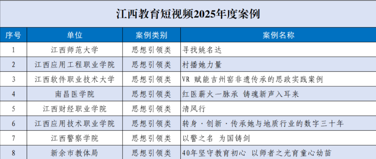 1月15日,江西省教育廳《“聯(lián)”手共進(jìn) “贛”出精彩 2025年江西教育融媒優(yōu)秀案例》發(fā)布,共評(píng)選出40項(xiàng)優(yōu)秀融媒傳播案例和48項(xiàng)優(yōu)秀短視頻案例。我?!短旃ば抡f(shuō)——從新余到世界的造物智慧》入選江西教育短視頻2025年度“青春表達(dá)類”案例。