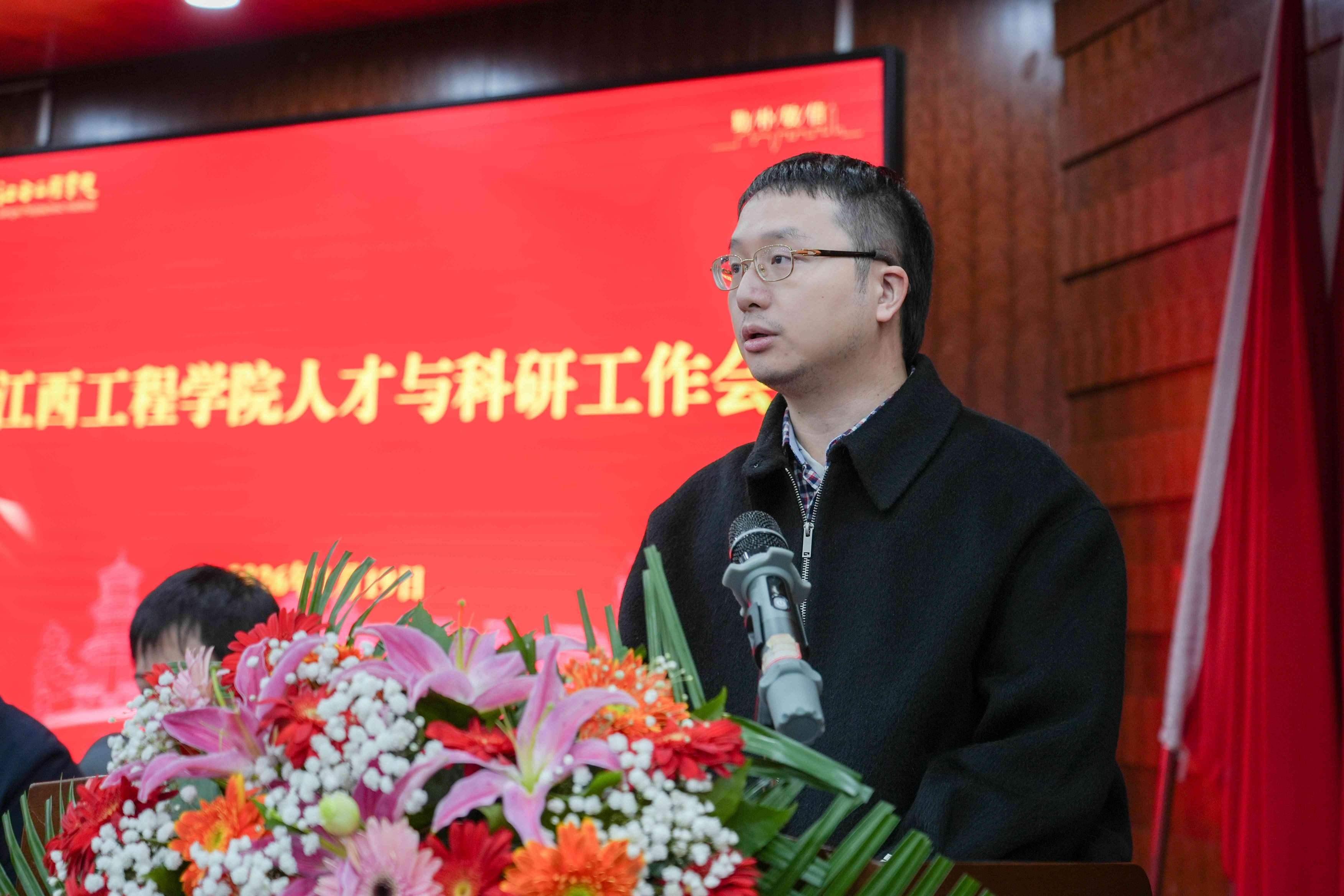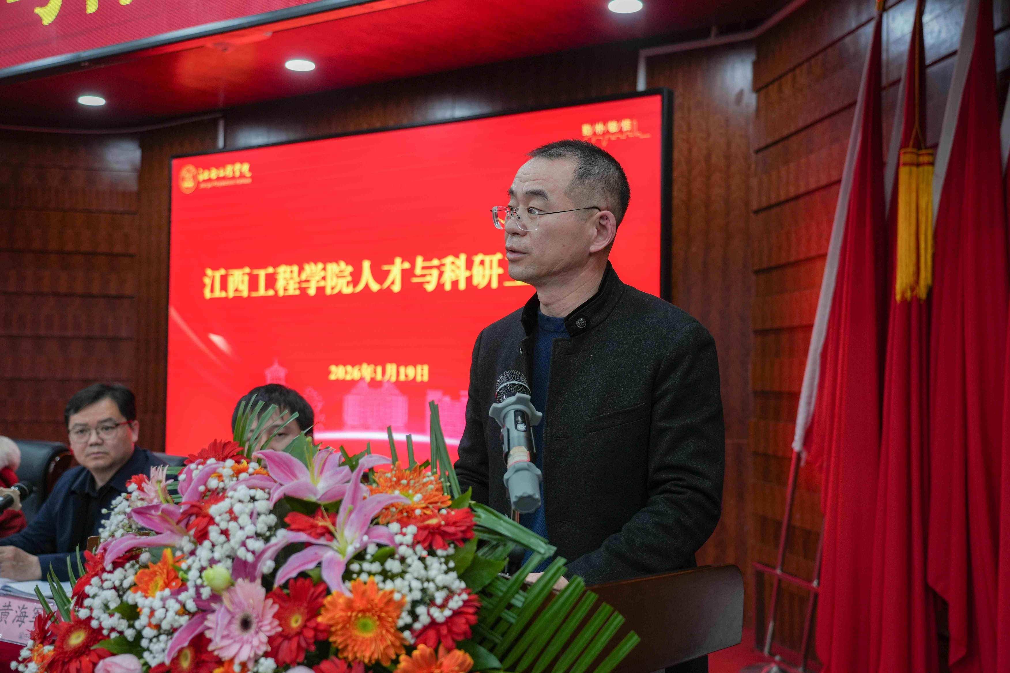 2026年1月19日下午,江西工程學(xué)院人才與科研工作會(huì)議在天工校區(qū)學(xué)術(shù)報(bào)告廳盛大舉行。新余市委常委、組織部部長(zhǎng)林坤出席并講話(huà),省教育廳科技與成果管理處一級(jí)調(diào)研員羅紅衛(wèi),省科技條件平臺(tái)中心(省計(jì)算中心)主任付康,新余市科技局黨組成員、副局長(zhǎng)朱小芳等省市領(lǐng)導(dǎo)應(yīng)邀出席并致辭。學(xué)校理事長(zhǎng)楊顯陽(yáng)致歡迎辭,黨委書(shū)記、督導(dǎo)專(zhuān)員魏建克,黨委副書(shū)記、校長(zhǎng)劉新躍出席并講話(huà),會(huì)議由魏建克主持。
