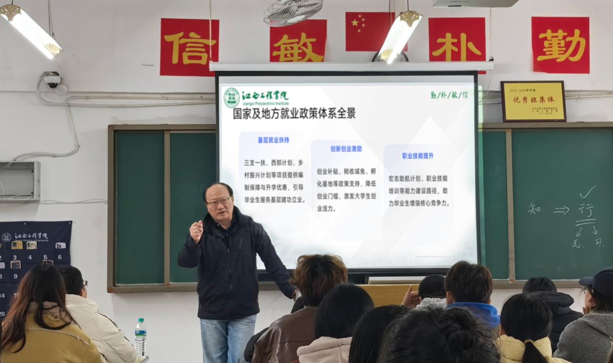 劉新躍首先闡述了當(dāng)前就業(yè)工作的時(shí)代背景與戰(zhàn)略意義。他強(qiáng)調(diào),黨中央、國務(wù)院始終將高校畢業(yè)生就業(yè)擺在突出位置,推出一系列有力政策,為同學(xué)們成長成才、就業(yè)創(chuàng)業(yè)營造了良好環(huán)境。他結(jié)合宏觀經(jīng)濟(jì)形勢(shì)、行業(yè)發(fā)展動(dòng)態(tài)與個(gè)人治學(xué)從教經(jīng)歷,圍繞專業(yè)定位、職業(yè)前景、就業(yè)現(xiàn)狀等維度進(jìn)行了深入淺出的講解,引導(dǎo)同學(xué)們樹立正確的擇業(yè)觀、事業(yè)觀,科學(xué)規(guī)劃大學(xué)生涯,著力夯實(shí)專業(yè)基礎(chǔ),培育核心競爭能力,不斷提升自身在就業(yè)市場(chǎng)中的適應(yīng)力與競爭力。